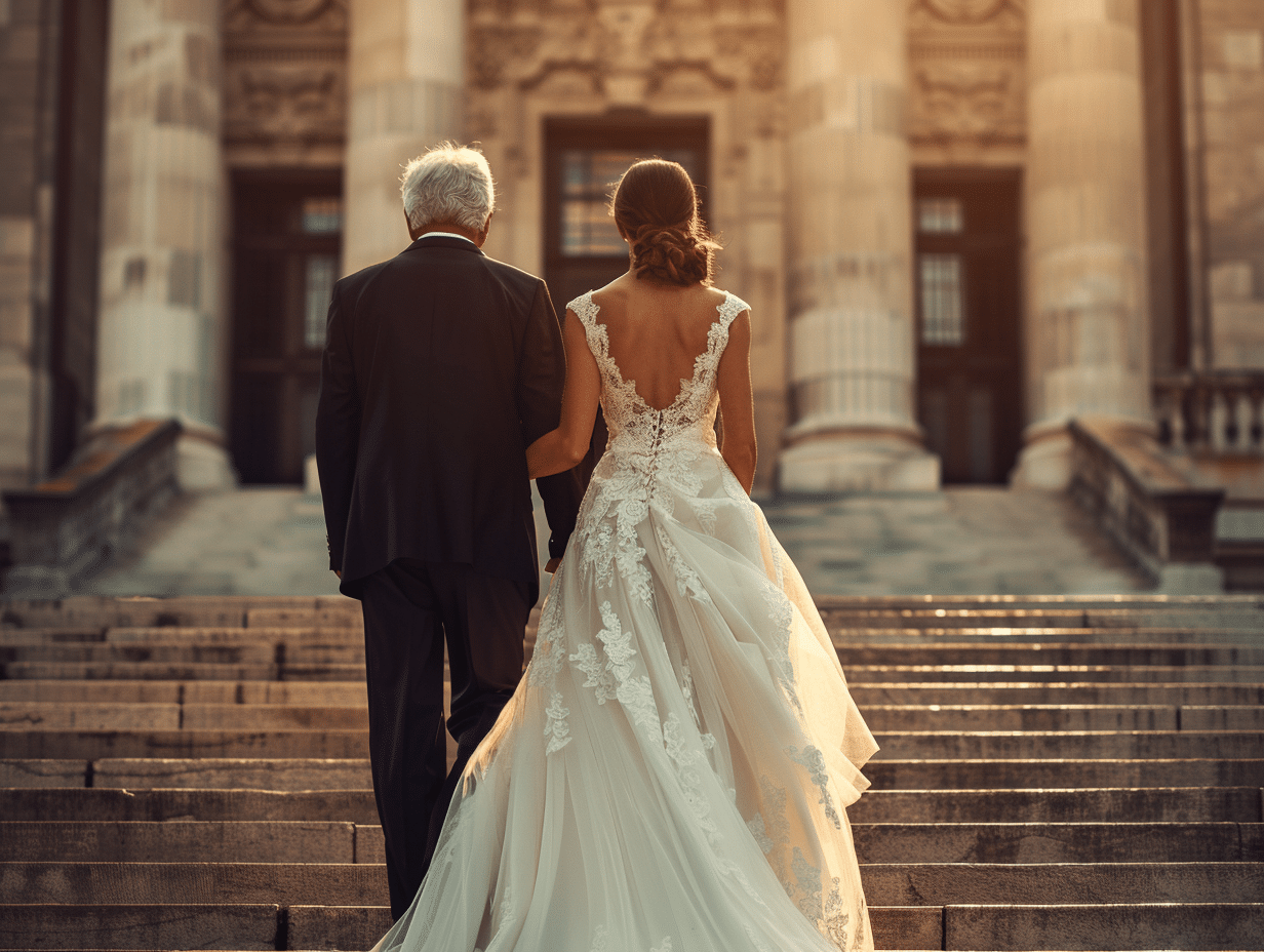 Dans le cortège nuptial, la figure du père de la mariée qui conduit sa fille à l’autel ou à la salle des mariages de la mairie est un tableau emblématique des traditions mariage. Cette pratique, chargée de significations, symbolise souvent la dernière promesse parentale avant que la mariée n’entame une nouvelle vie avec son conjoint. Lors de la cérémonie civile, la procession est un moment solennel qui marque le début de la célébration du mariage civil.